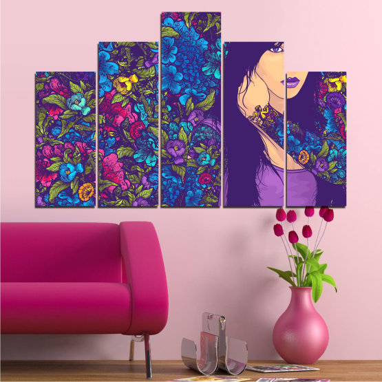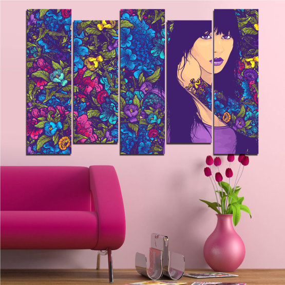Αφηρημένο κορίτσι με τα λουλούδια 5 τεμάχια №0724